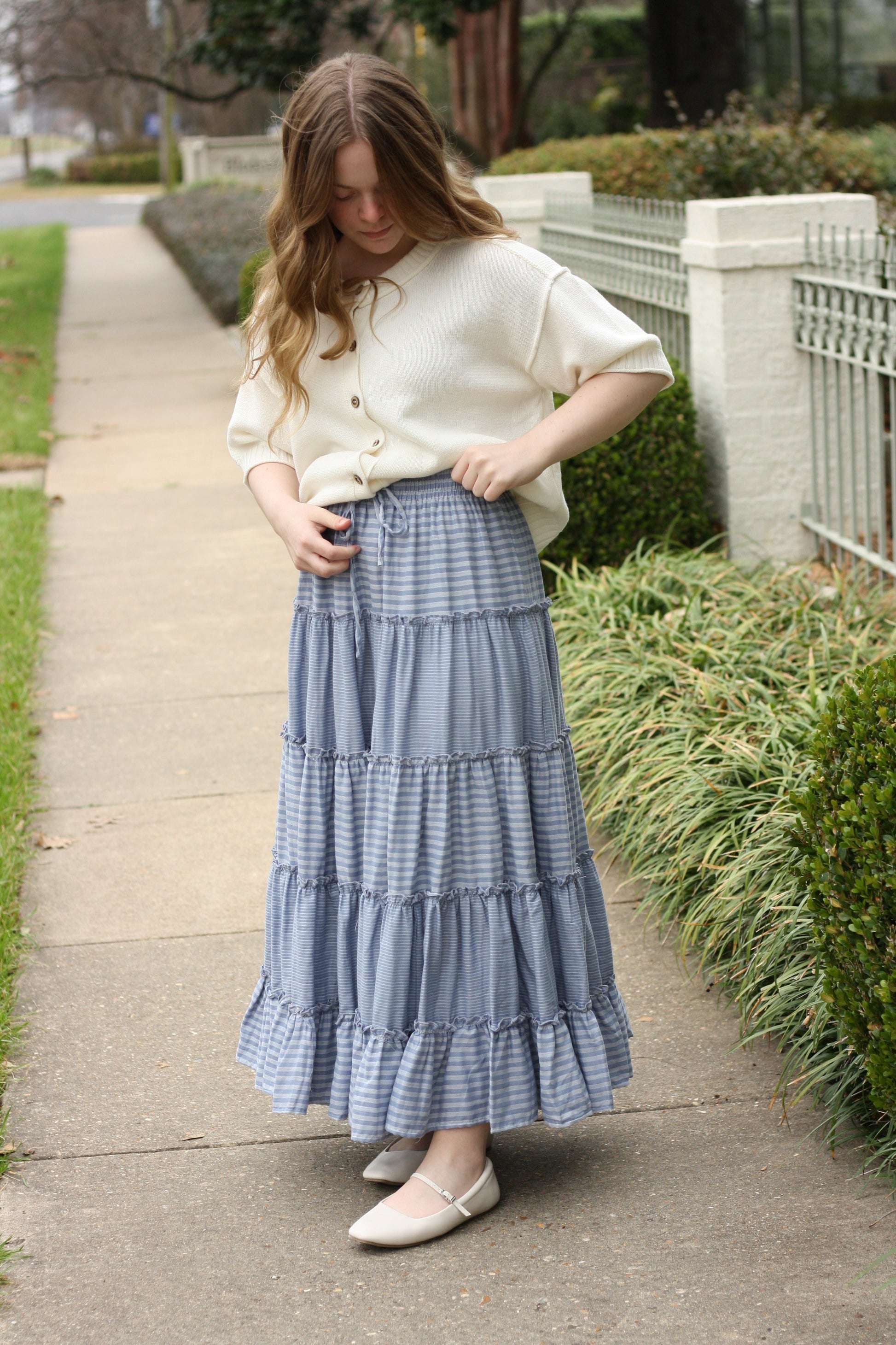 Blue Tiered Midi Skirt