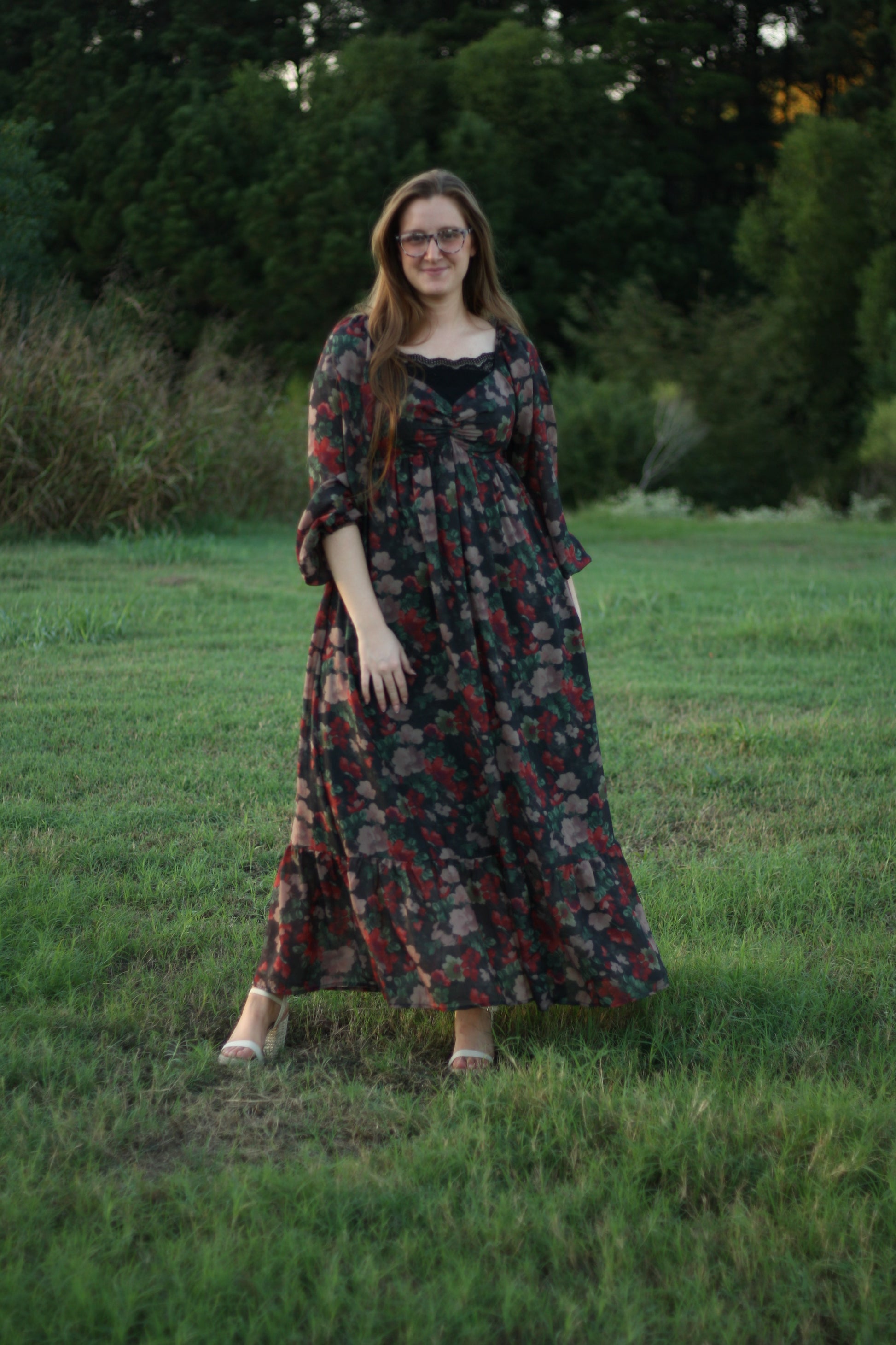 This maxi dress is all about soft textures, vintage blooms, and effortless elegance. Crafted from a silky crinkled fabric that flows beautifully with every step, it features a romantic sweetheart neckline and full balloon sleeves that add a dreamy silhouette. The bold floral print in rich wine, mauve, and olive tones feels perfectly in tune with the season, while the smocked back provides a flexible, flattering fit. With a soft lining, side pockets, and a square-cut back neckline, it’s thoughtfully detailed for comfort and ease.